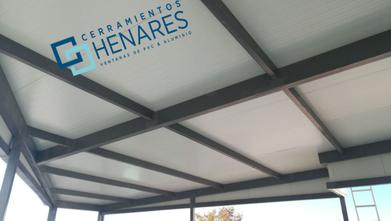 Techo fijo autoportante con forma, en panel sándwich de chapa de acero y espuma rígida de poliuretano de 80mm. de espesor