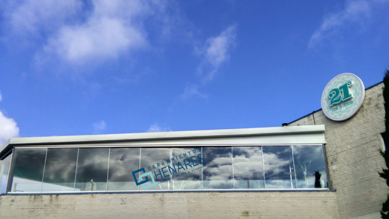 Cortinas de cristal correderas con vidrio templado de 10mm.